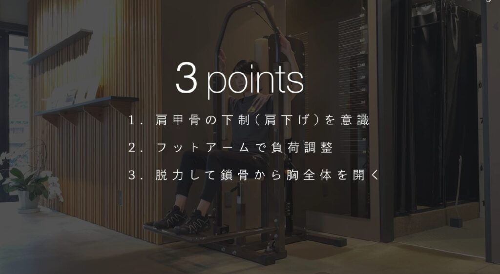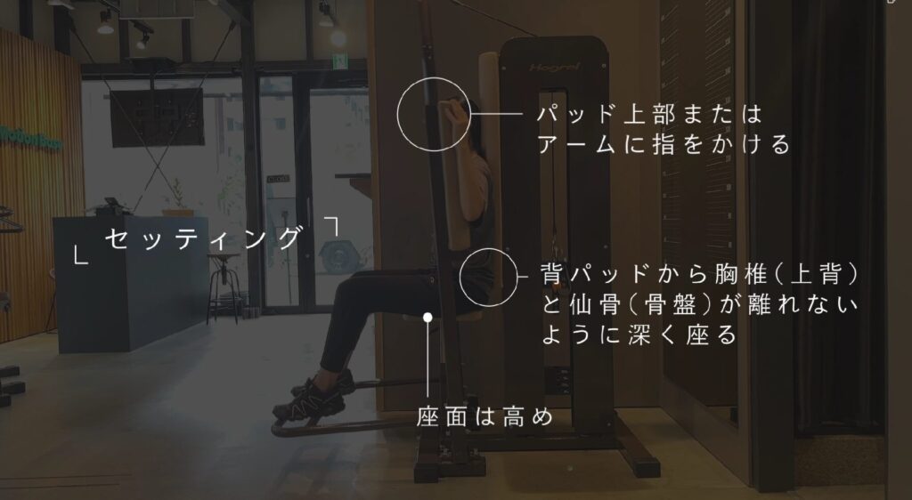 腕をパッドに置く位置を上下させると、マシンの効果も変わってきますので、お試しください。