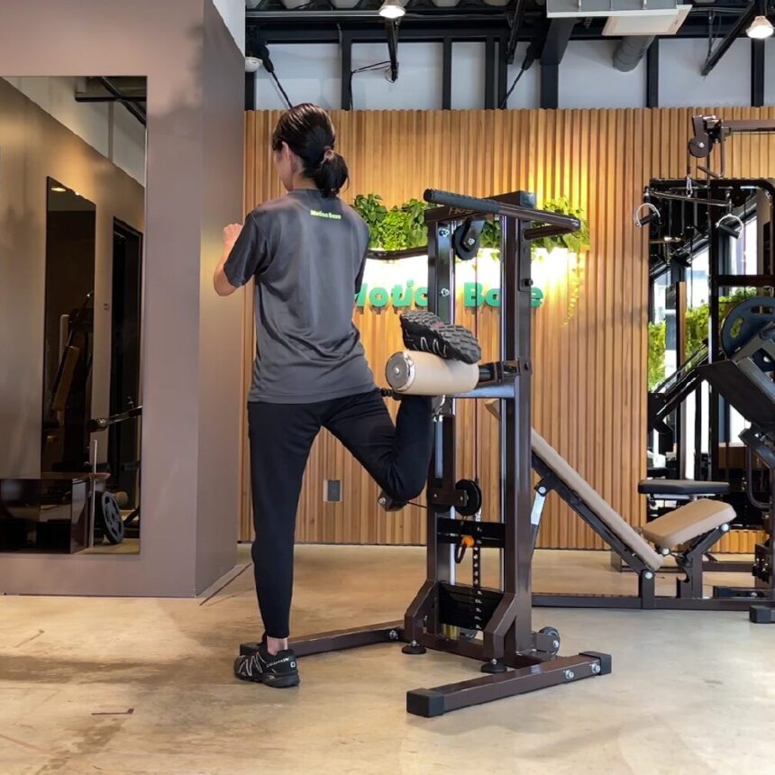 股関節の動きを向上させるトレーニングはある程度の可動域を確保しながら反復練習を行う必要があり、トレーニングマシンには可動範囲広く低抵抗という要素が求められます。